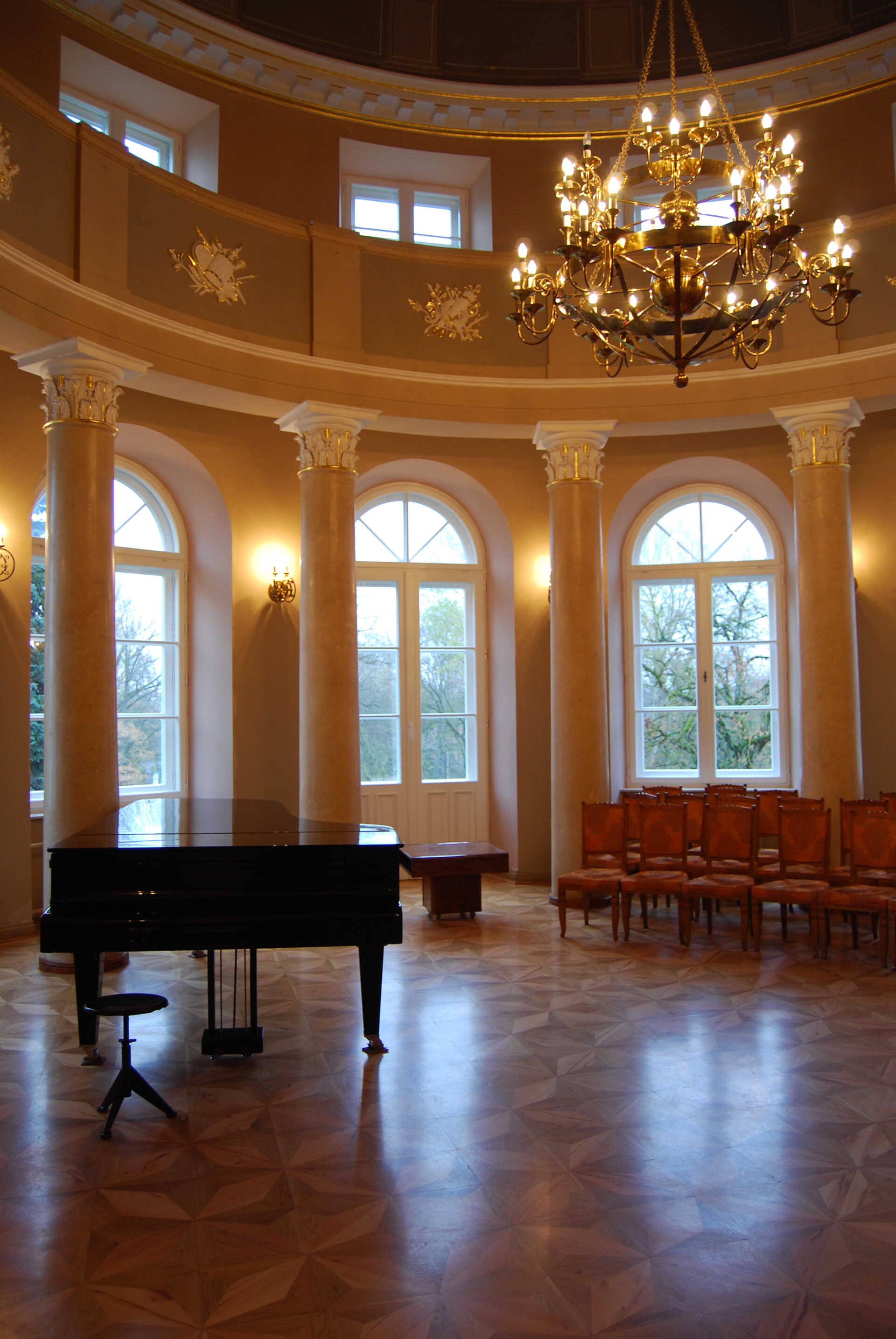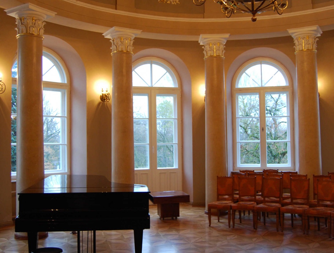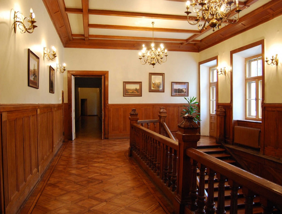 Дворец окружает парк площадью в 12 га, основанный еще в XIX в. В нем немало деревьев экзотических пород, есть водоемы, сохранились аллеи старых лип и каштанов.